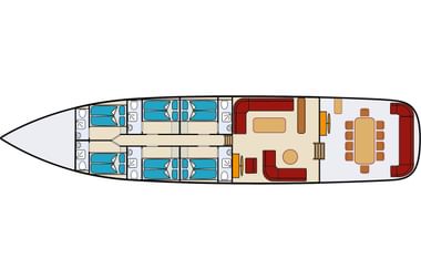 Die Sundial bietet ihren Gästen viele gemütliche Plätze zum Entspannen und Genießen. Der stilvolle Salon mit seiner warmen Holzeinrichtung lädt zum Verweilen ein – hier können Sie Ihre Mahlzeiten genießen, wenn das Wetter einmal nicht zum Essen im Freien einlädt. Bei gutem Wetter wird im großzügigen Open-Air-Restaurant auf dem Hauptdeck serviert. Dort lässt sich die mediterrane Küche des Bordkochs perfekt mit Meerblick und frischer Brise verbinden.