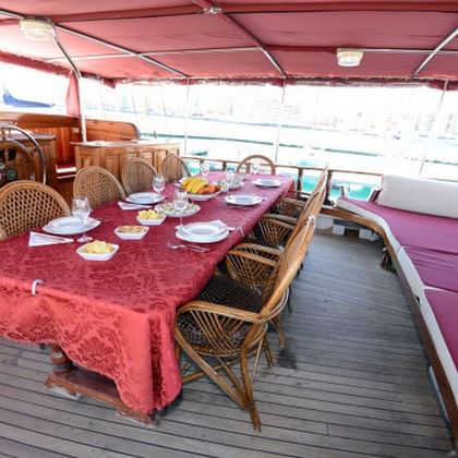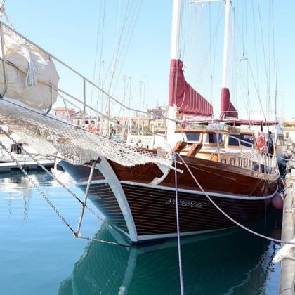 Today, after breakfast, we head back to the island of Panarea. We anchor in the bay at the port of San Pietro. From there, you can go on a hike that takes you through the village of Panarea, across the beach, and through the prehistoric village of Drautto. At lunchtime, you will enjoy a picnic with a view of the beautiful Cala Junco bay before we return to the Sundial. Then we will reach the island of Salina. There you can explore the shops and sample local specialties. We will spend the night in the port of Salina.